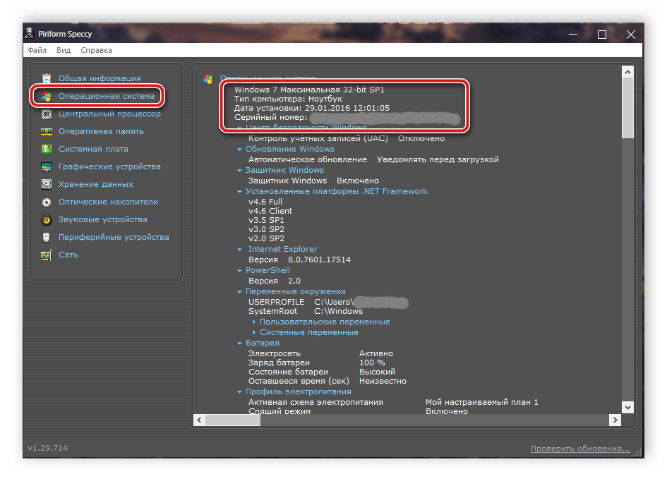 Существует ряд специализированных программ, чья функциональность сосредоточена на определении железа компьютера. Они помогают узнать подробную информацию о комплектующих и системе. Если вы используете ноутбук, то софт сразу это определит и покажет его серийный номер. Обычно он отображается во вкладке «Общая информация» или «Операционная система».