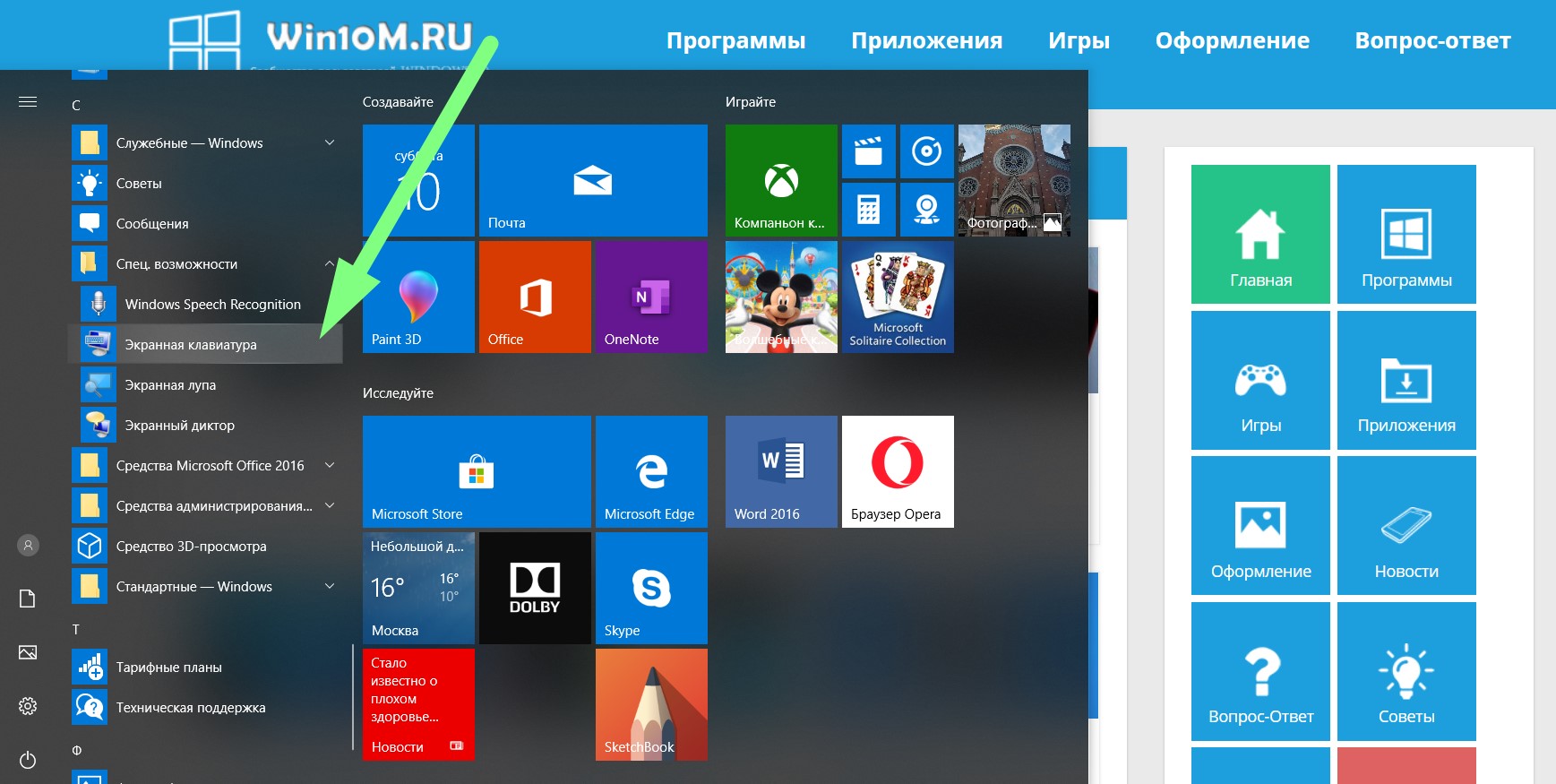 Обратите внимание, что в Windows 10 для быстрого вызова экран. клавиатуры есть спец
