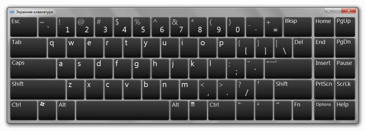После того, как мы нажали на иконку программы, нам откроется главное окно программы «Экранная клавиатура» или так называемая виртуальная клавиатура: