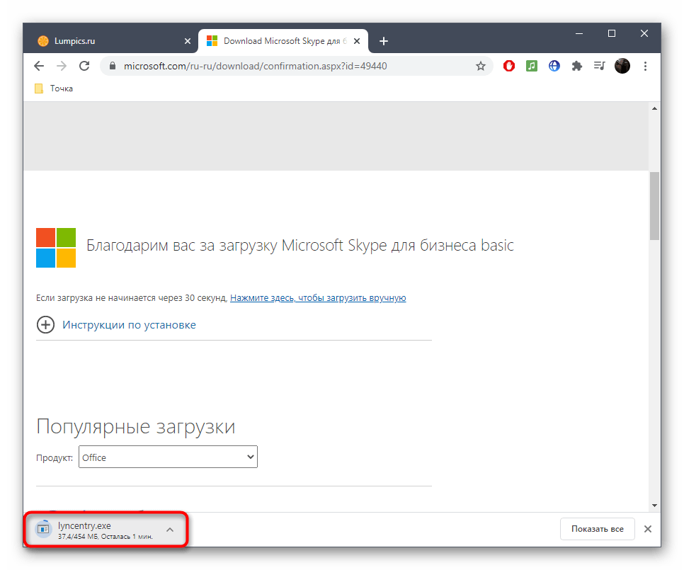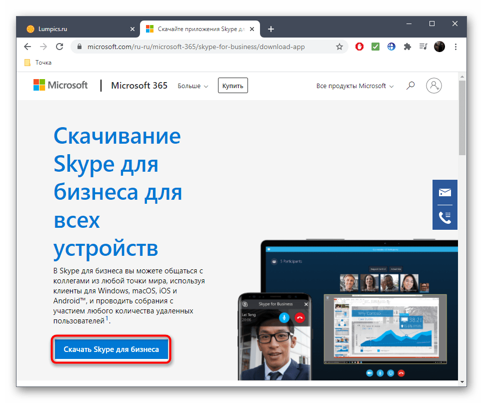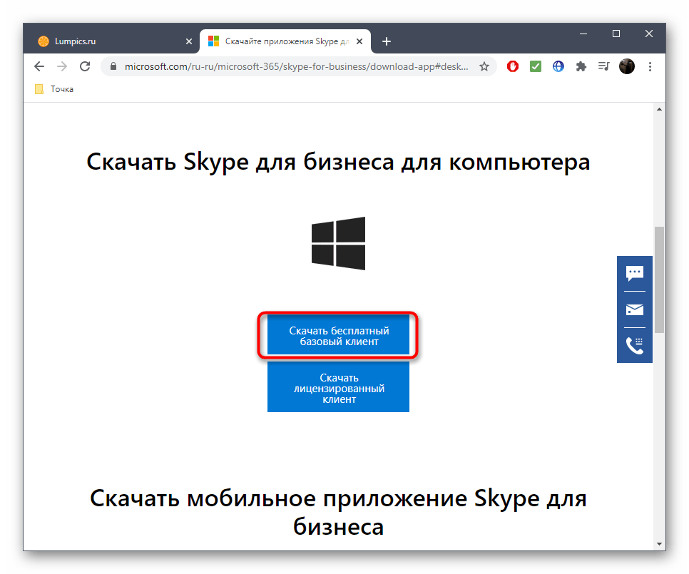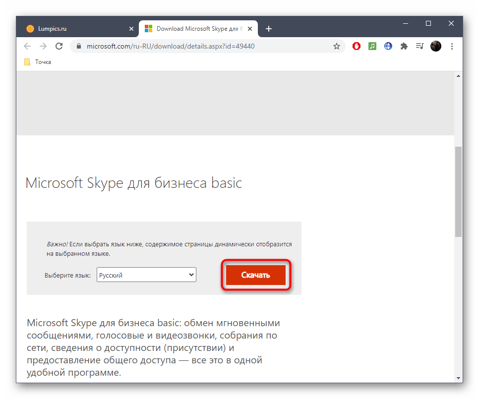На той самой странице нажмите по кнопке «Скачать Skype для бизнеса».