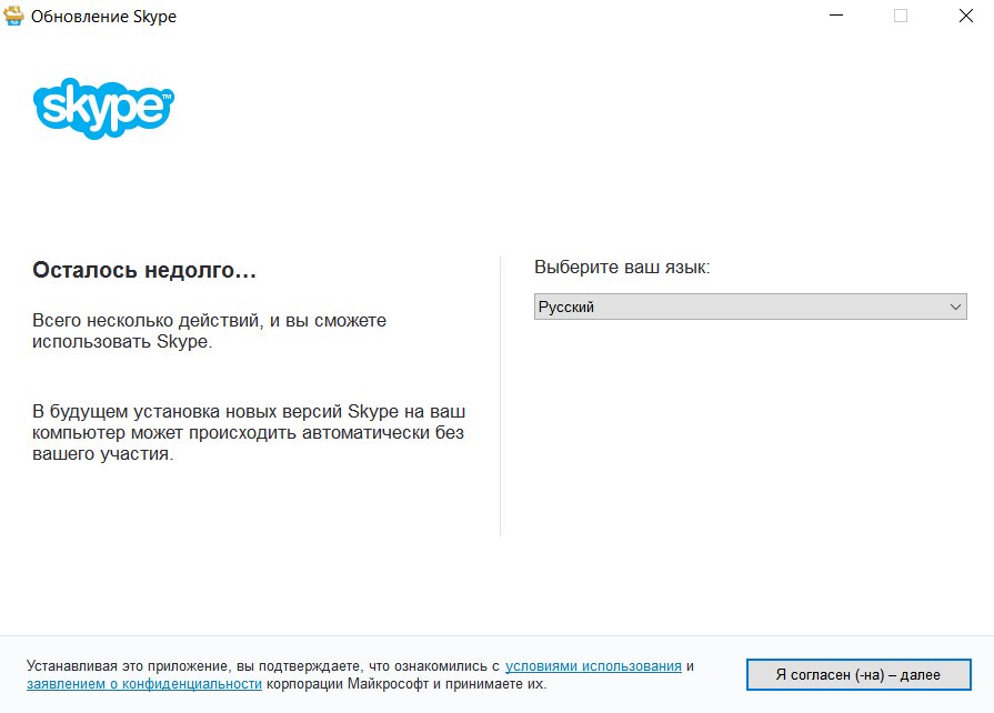 | Для установки Skype необходимо приблизительно 1,6 МБ свободного дискового пространства. После запуска установочного файла установщик выполнит загрузку приложения Skype (примерно 20 МБ) в фоновом режиме. | После запуска установочного файла установщик выполнит загрузку приложения Skype (примерно 20 МБ) в фоновом режиме. | Создайте учетную запись и войдите в сеть. |