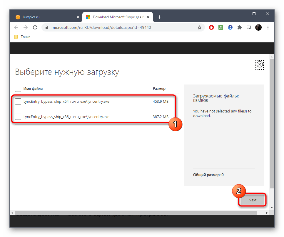 Отметьте галочкой версию с разрядностей вашей операционной системы и следом щелкните по «Next».