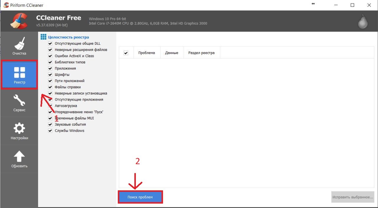 Рис. 8. Исправление проблем и ошибок в реестре.