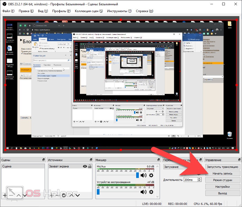 Примените изменения и закройте текущее меню. На этом этапе можно начинать запись, кликнув по отведенной для этого кнопке.