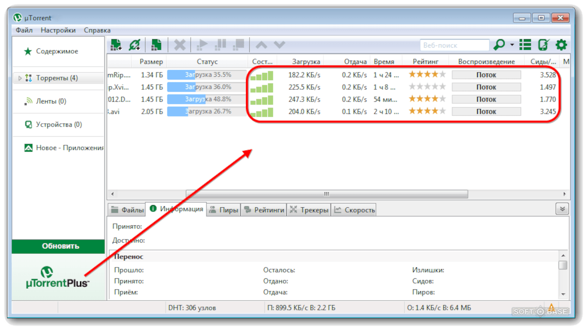 После чего в приложении uToorent его нужно добавить в главном окне программы в пункте «Торренты», расположенном в левой части. При добавлении максимального количества сидеров скорость существенно возрастет.