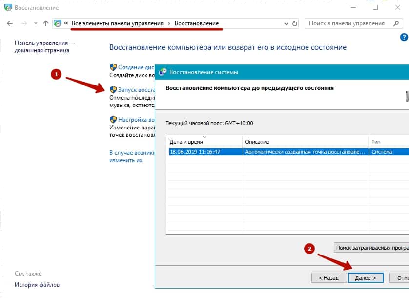 - откат операционной системы при помощи точки восстановления Windows;