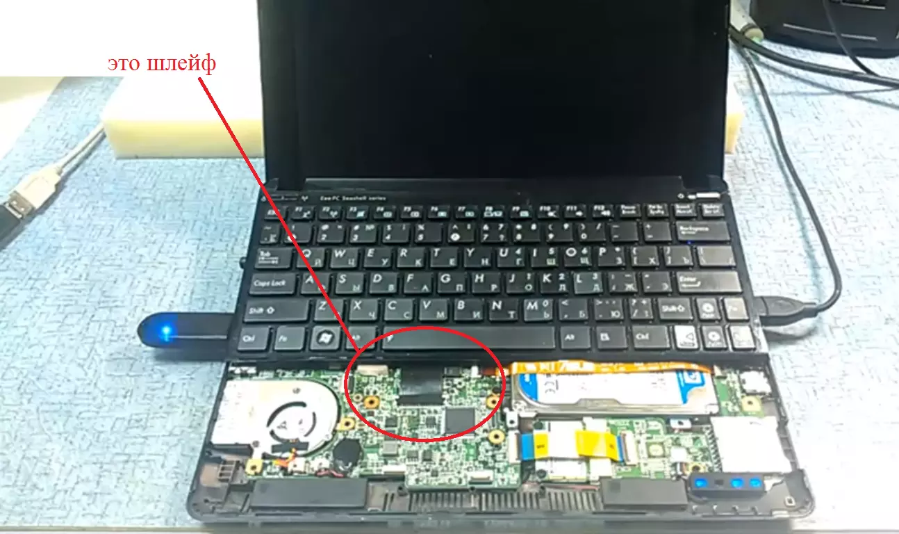 Пластина клавиатуры крепится к самому ноутбуку с помощью шлейфа. Вы сразу же его увидите.