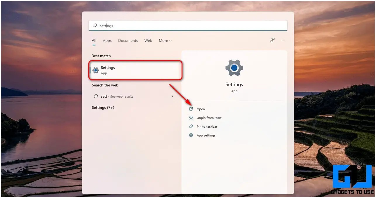 Откройте приложение «Настройки» на ноутбуке с Windows 11.