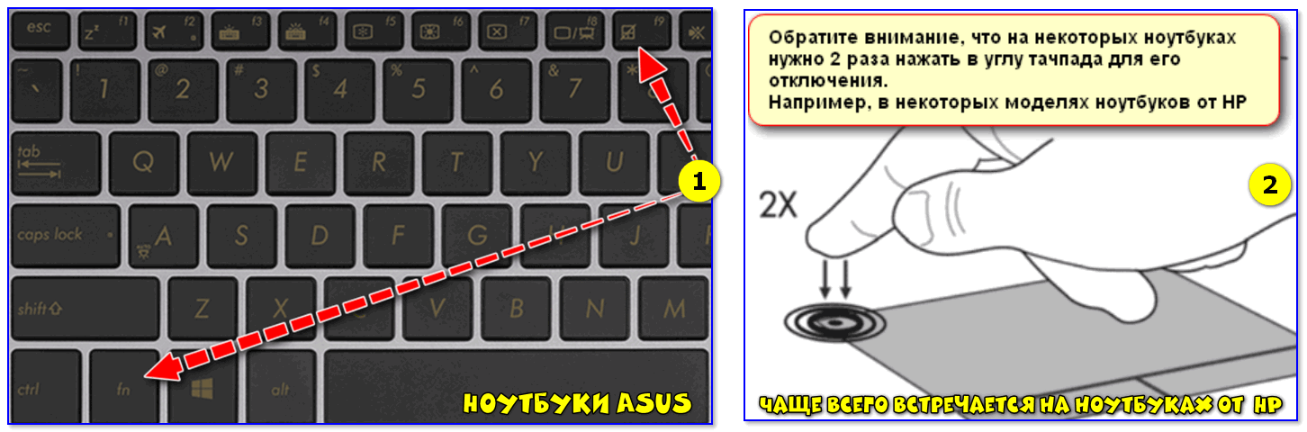 - Acer: Fn+F7 (либо в свойствах мышки);