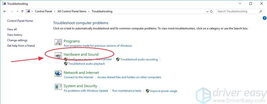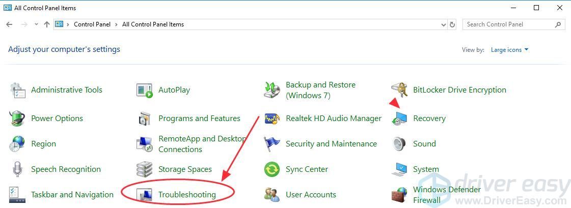 1) Открыть Панель управления в свой ноутбук и щелкните Поиск проблемы .