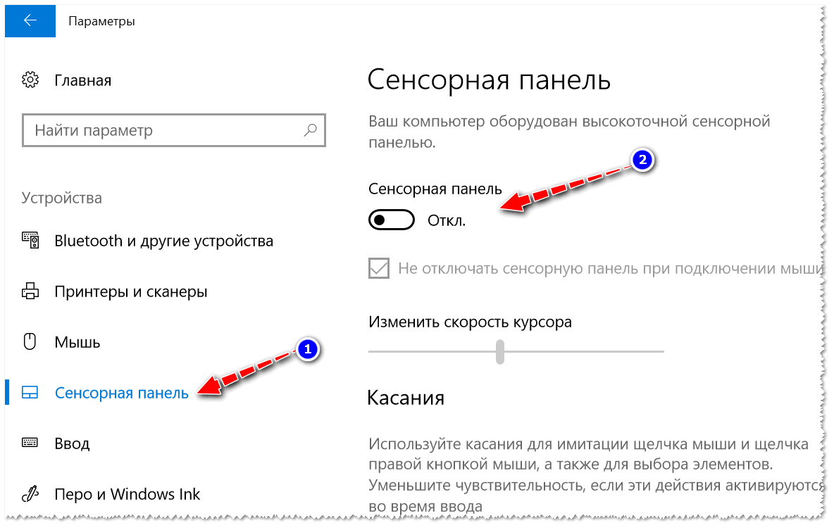 Как отключить тачпад на ноутбуке с виндовс 10?