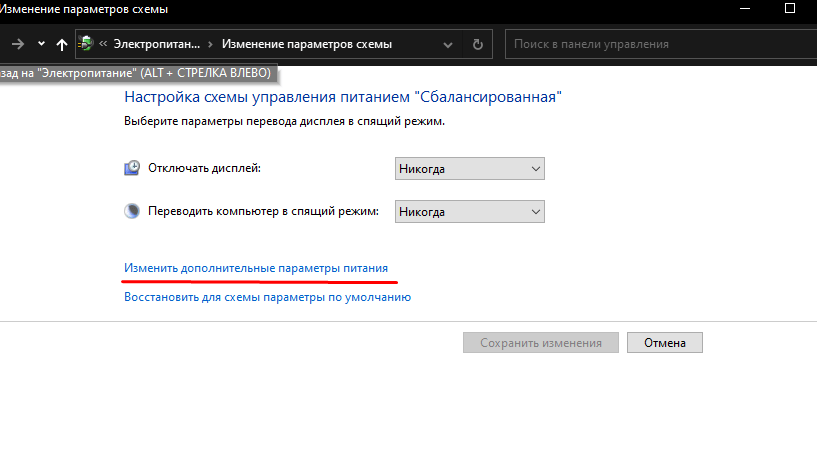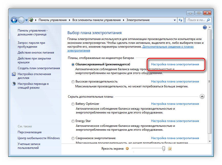 Для более детального редактирования переместитесь к «Настройка плана электропитания».