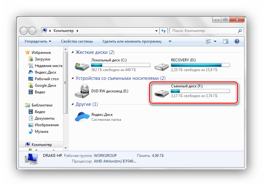 Возможно, у вас сломался один из портов USB. Воспользуйтесь другим разъёмом, если у вас не лэптоп, а стационарный компьютер – установите флеш-накопитель с обратной стороны корпуса.