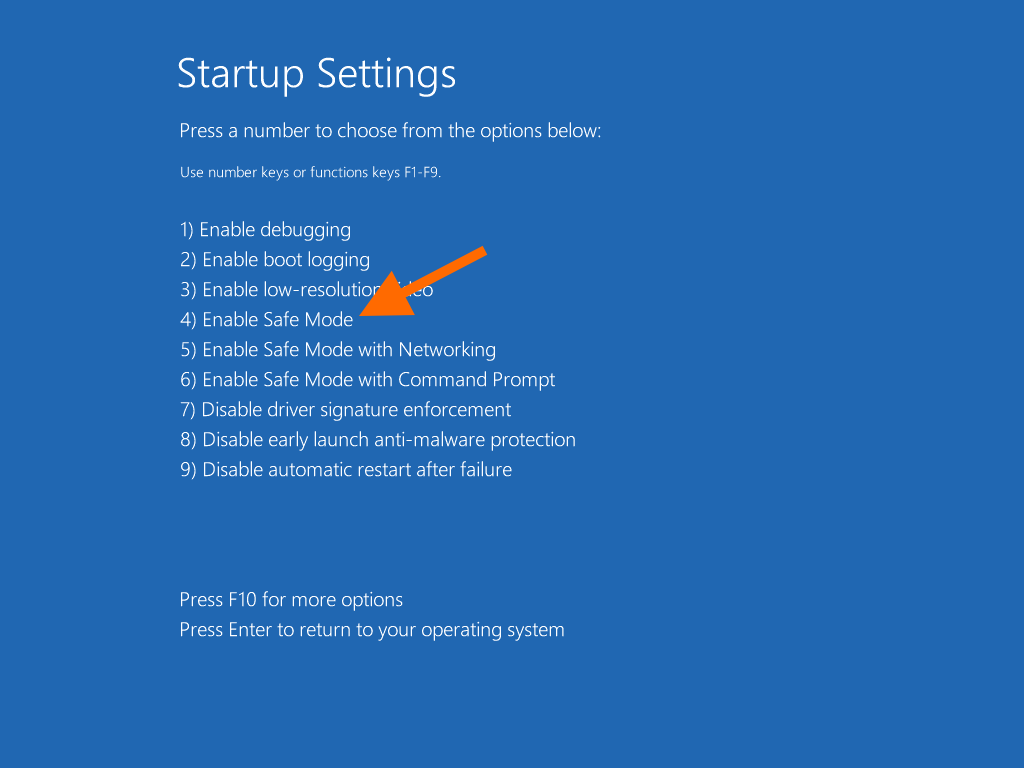 - Во время загрузки удерживаем клавишу F4, пока ОС не запустится в безопасном режиме.