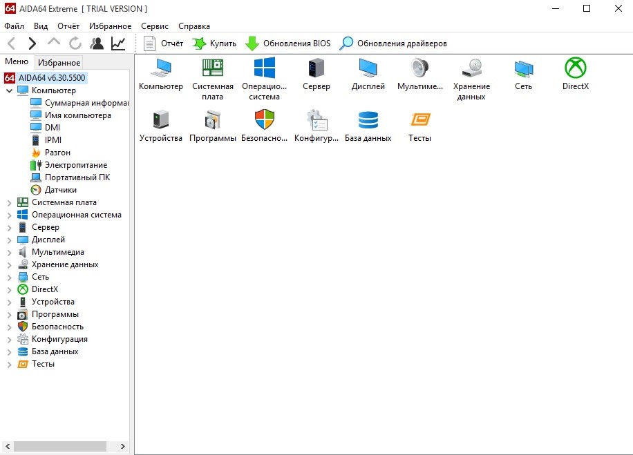 Основное окно работы с программой AIDA64 Extreme выглядит следующим образом: