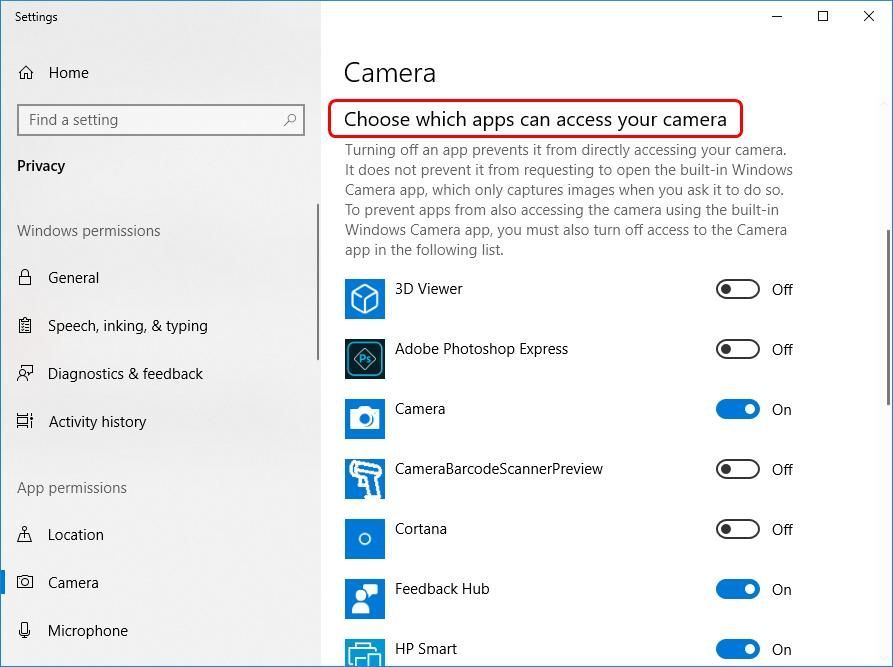 3) Прокрутите вниз до Выберите, какие приложения могут получить доступ к вашей камере и переключить На ВСЕ приложения, которым вы хотите получить доступ к камере.