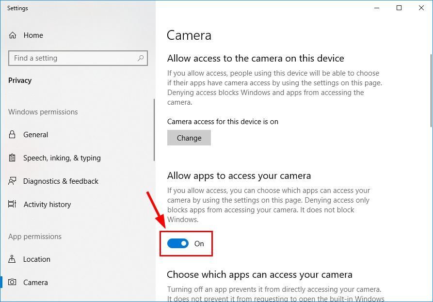 2) Не забудьте переключить На Разрешить приложениям доступ к вашей камере .