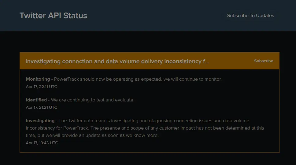 If it is a widespread issue with Twitter, then you can check the status of the Twitter API service here https://api.twitterstat.us/. If there is any downtime of the API service, then you will be seeing the Twitter Something Went Wrong error. After the downtime is fixed, Twitter will start working again.