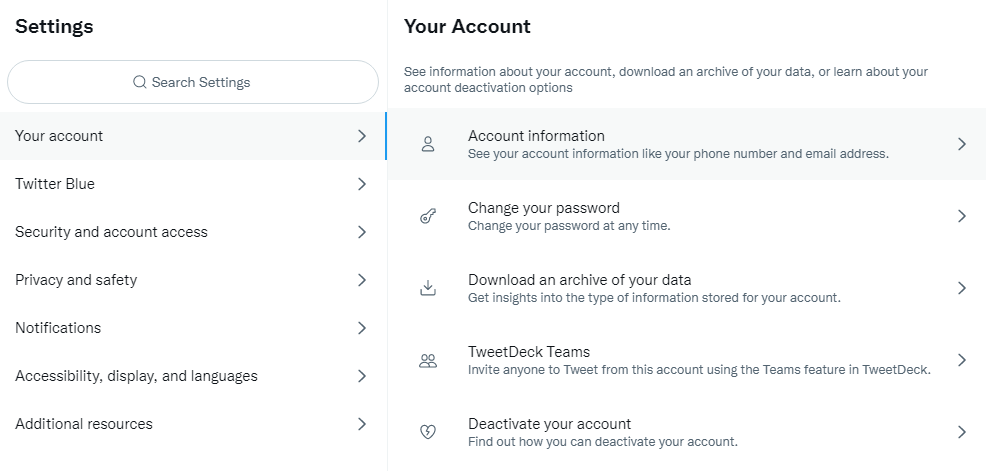- First, go to Settings and privacy > Your Account.