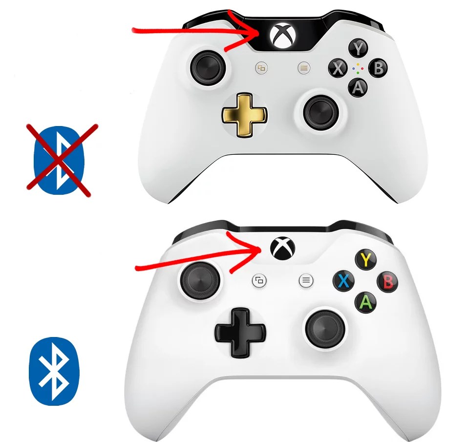 Для начала следует проверить, поддерживает ли геймпад функциюBluetooth – если нет, то логотип Xbox будет находиться в пластиковой части контроллера, если поддерживает, то отдельно от неё, как показано на изображении.