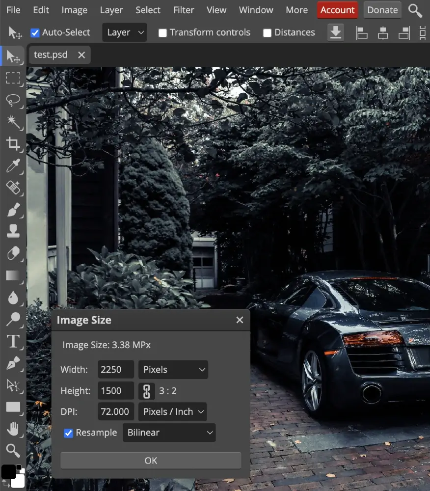 - Beyond DPI testing, Photopea offers a wide range of editing tools similar to industry-standard software.