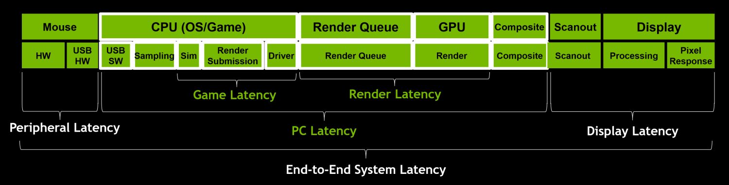 Задержки рендеринга и игры – это лишь часть всей задержки системы, которая влияет на общий игровой процесс на стороне клиента. Сквозная задержка системы также будет включать ваши периферийные устройства (мышь и клавиатуру) и ваш монитор.