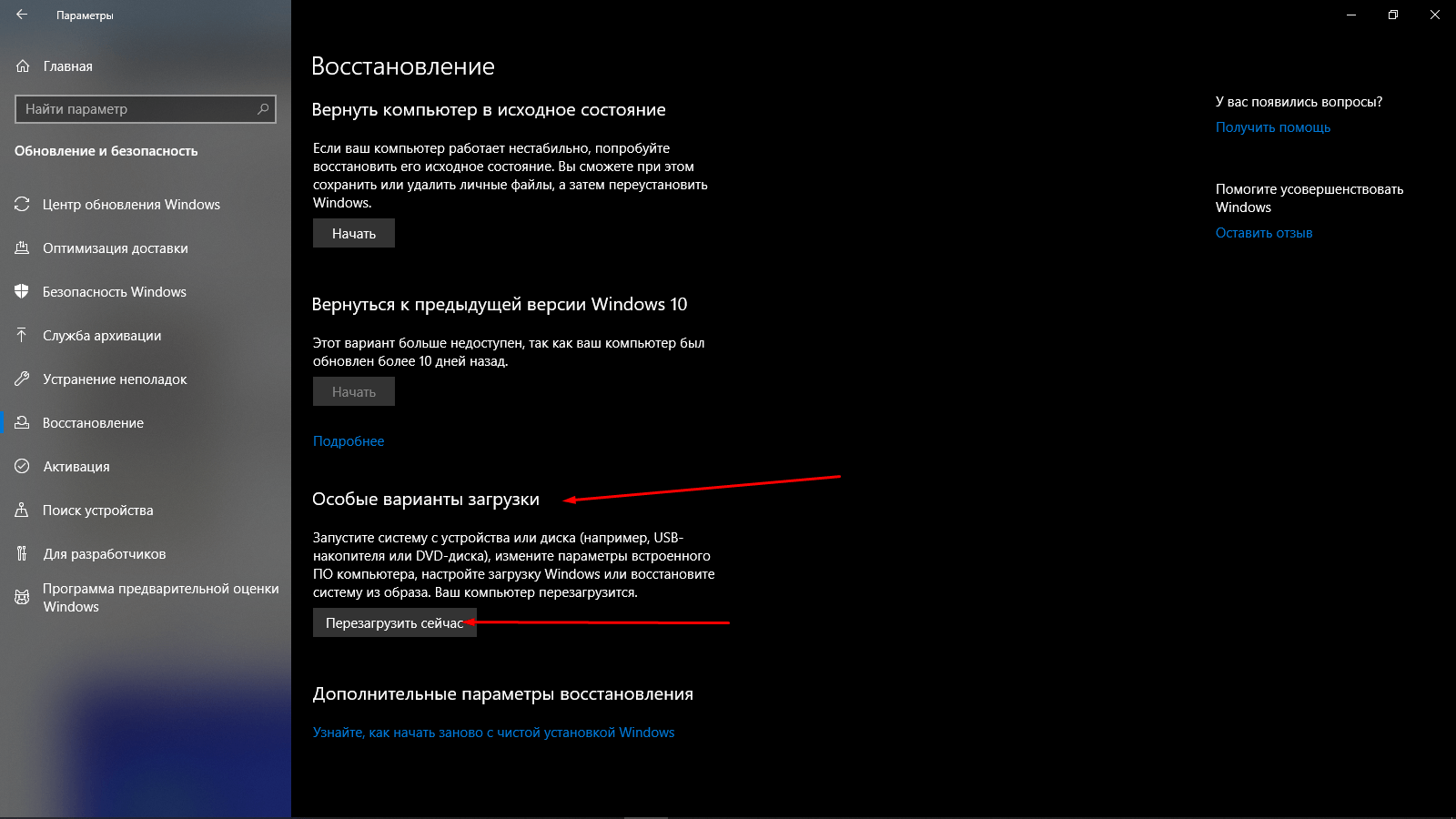 - В разделе «Расширенный запуск» нажмите кнопку Перезагрузить сейчас .