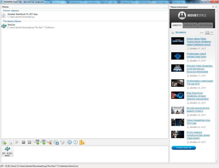 Важно! Для монтажа игрового файла с редким расширением на оптический привод обычно выбирают бесплатную и простую утилиту под названием Daemon Tools Lite