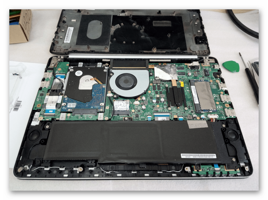 Если забыли и продолжили разборку, готовьтесь, что ноутбук может не включиться никогда. Естественно, что блок питания в этот момент также должен быть отключен.