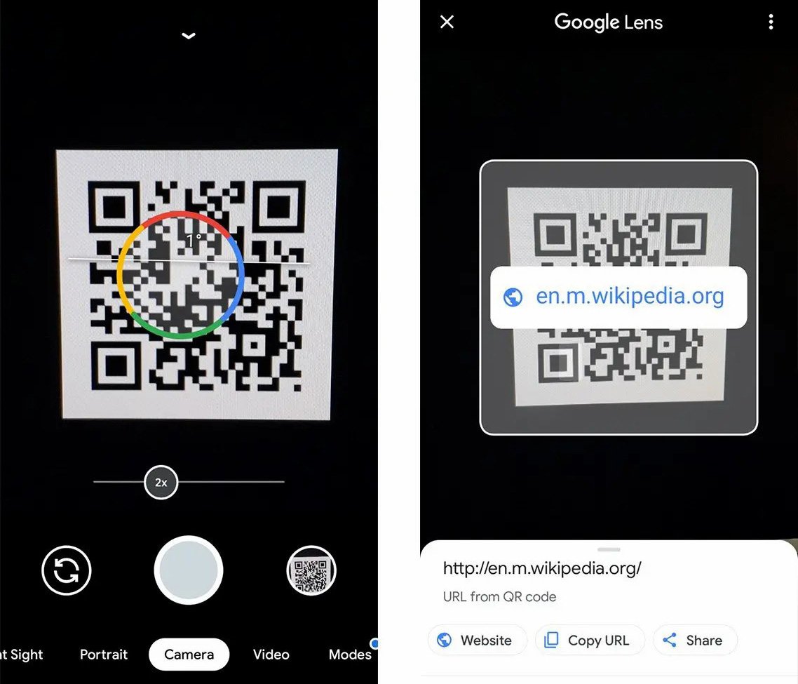 С помощью Google Объектива вы можете как отсканировать QR с фото, так и использовать его вместо камеры или приложения для сканирования, просто наведя его на нужную область.