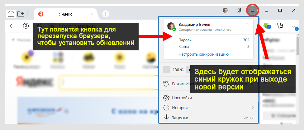 5. Яндекс перезапуститься и обновиться до последней версии.