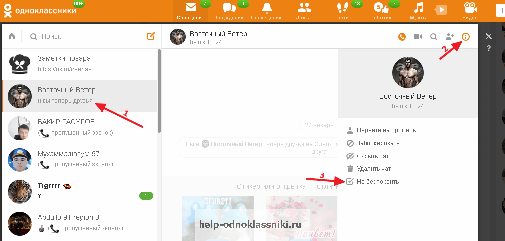 Если нужно убрать звук для сообщений в Одноклассниках, передвиньте ползунок в поле «Не беспокоить» в положение включен. Появится небольшое окошко, в котором можно выбрать подходящее время.