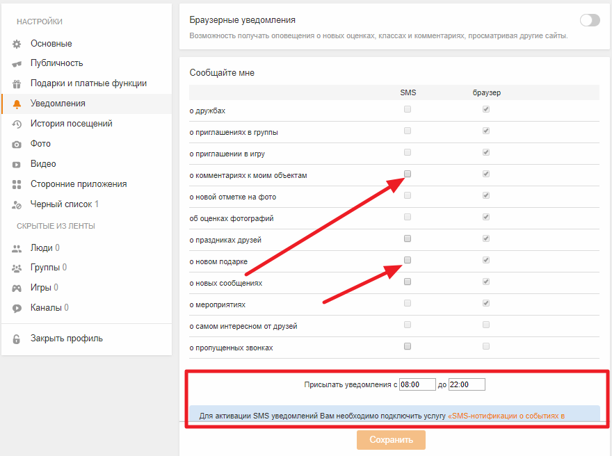 Отключить уведомления, которые приходят в виде SMS на телефон