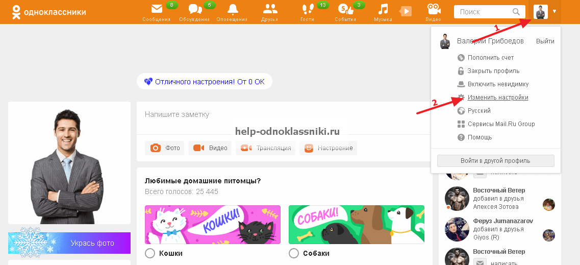 Чтобы убрать оповещения в Одноклассниках, а точнее редактировать их параметры, следует перейти в соответствующий раздел Настроек аккаунта. Действия следующие: 1.Открываем свой профиль в социальной сети;