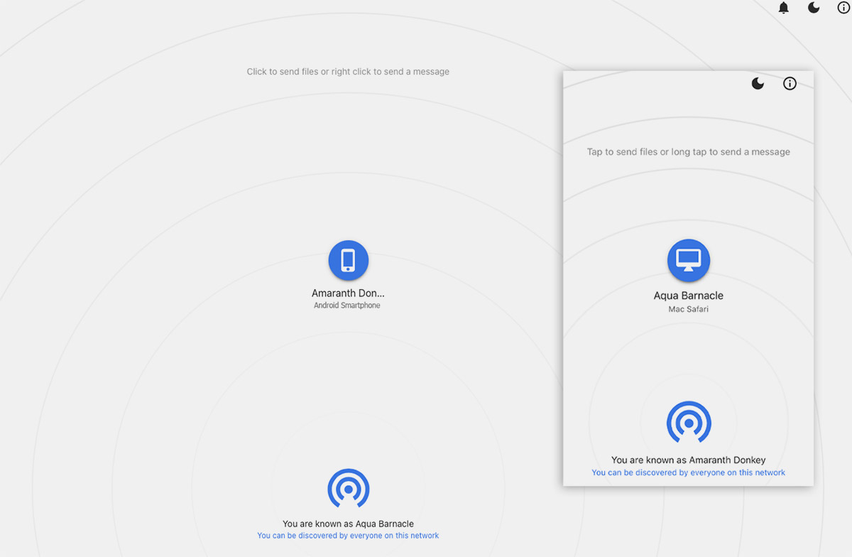 Как понятно из названия, этот сервис пытается скопировать работу яблочного аналога AirDrop. Только работает он на любом гаджете без привязки к операционной системе или производителю.