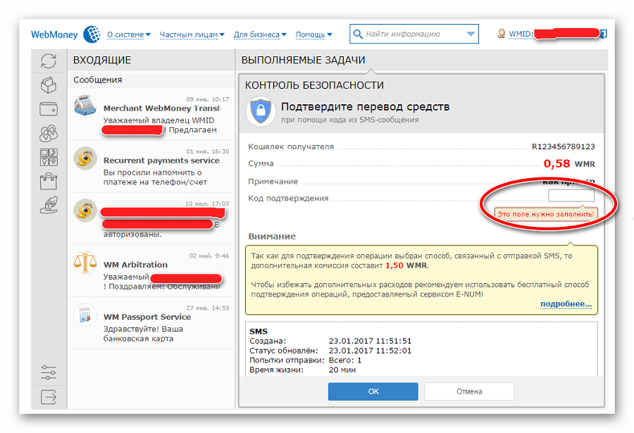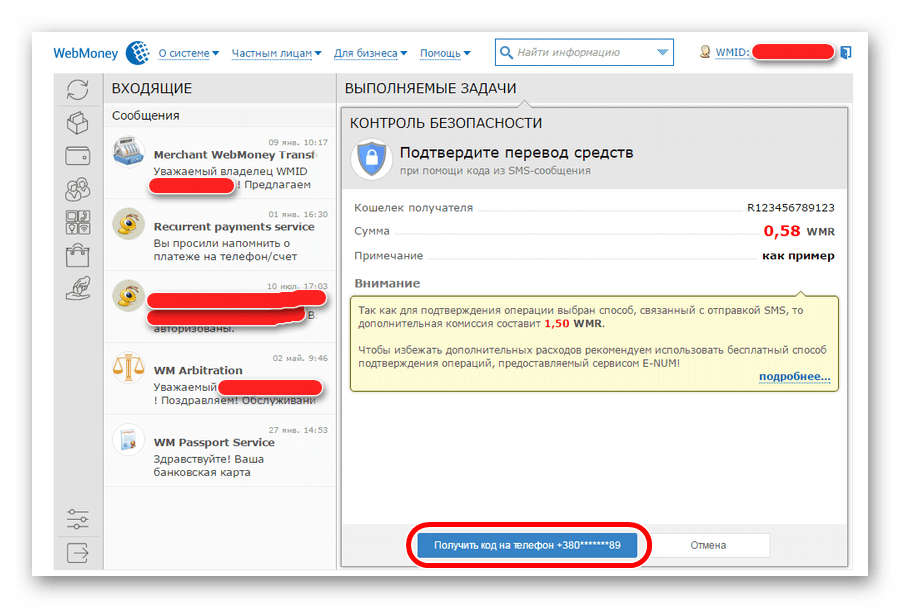 - Переводить Webmoney следует только после внимательной проверки всех введенных данных, чтобы исключить ошибку. Операция подтверждается отпечатком пальца, кодом из PUSH-сообщения или SMS.