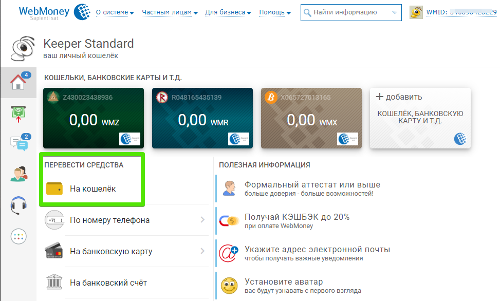 Итак, в этой статье мы разобрали вопрос, как перевести деньги с WebMoney на WebMoney, что для этого нужно, какие существуют виды электронных кошельков и комиссия за совершение операций.