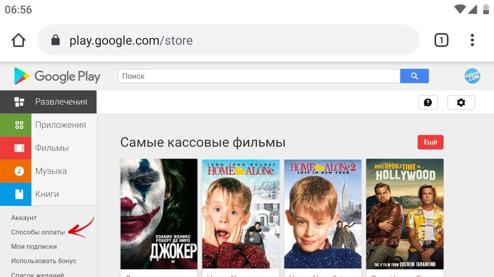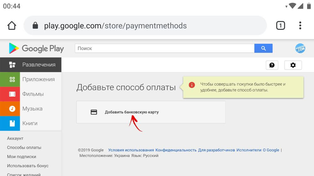 Как добавить способ оплаты на сайте Google Play