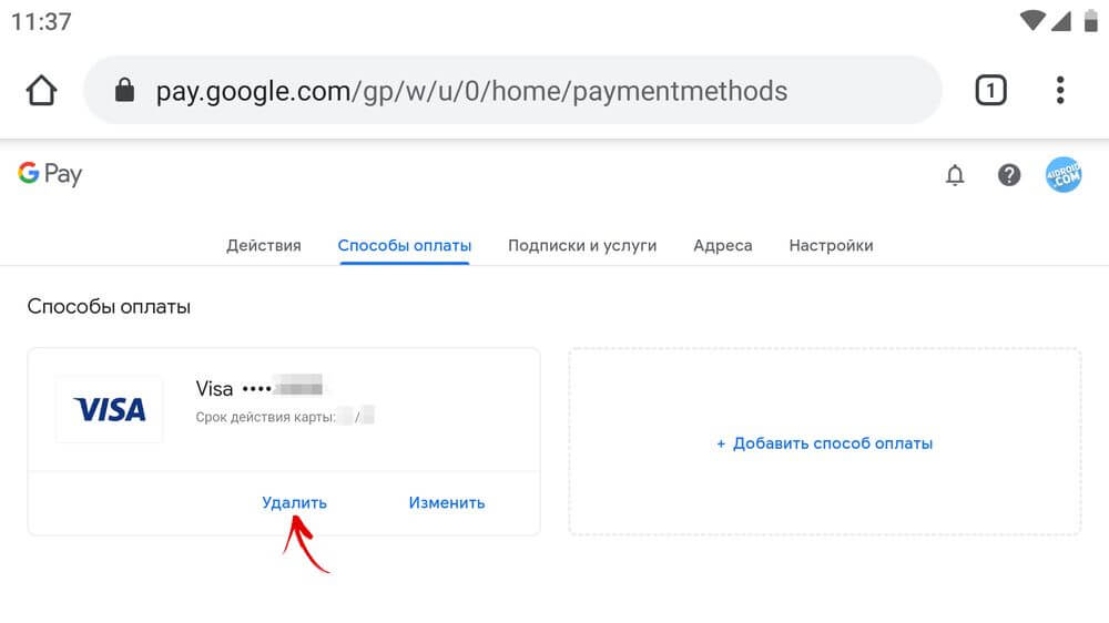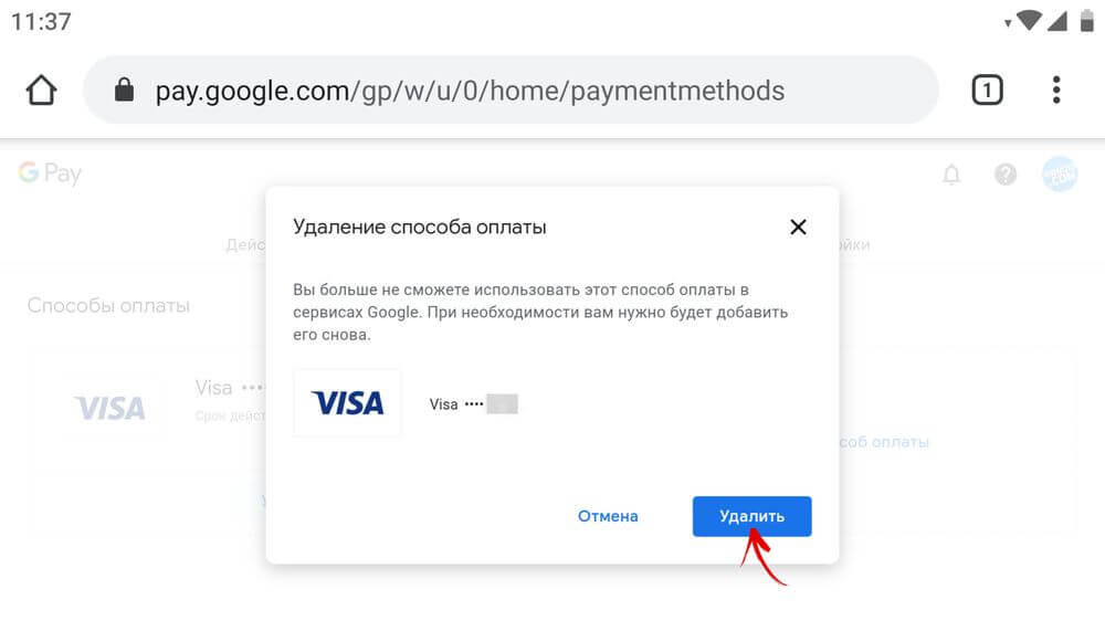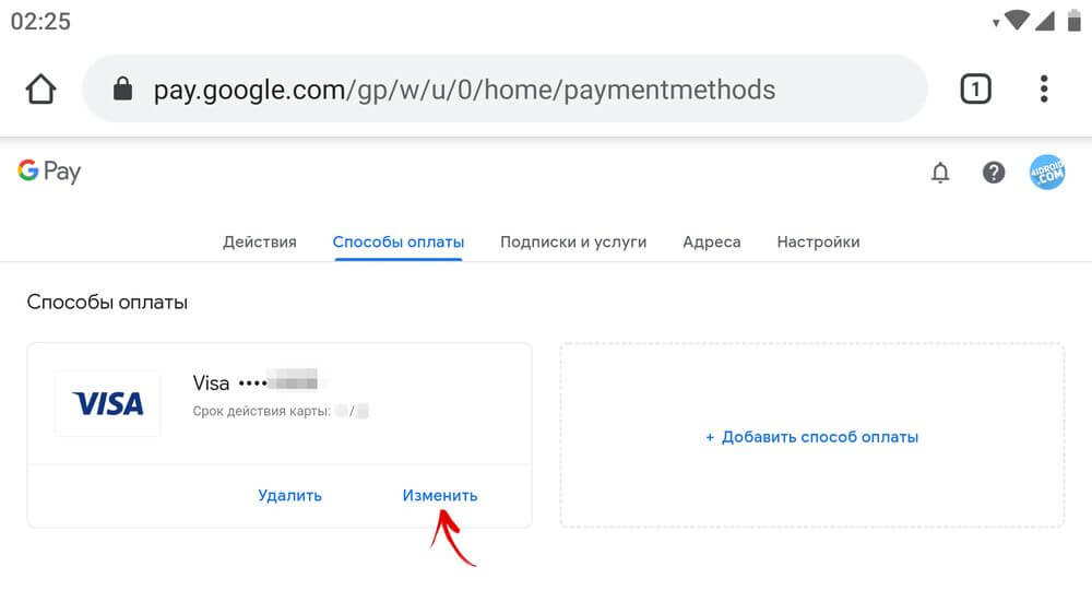 Как изменить или удалить способ оплаты в приложении или на сайте Google Pay