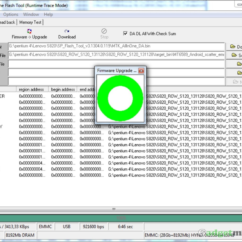 Процесс пошивки с помощью SP Flash Tool