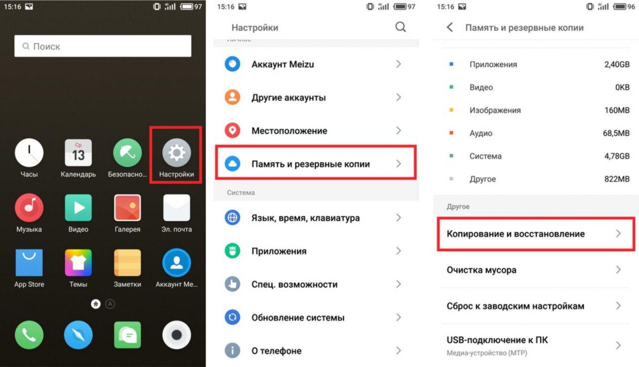 - Переместите бэкап на другое устройство, компьютер или флеш-накопитель и перекиньте его на Meizu M5 после перепрошивки.