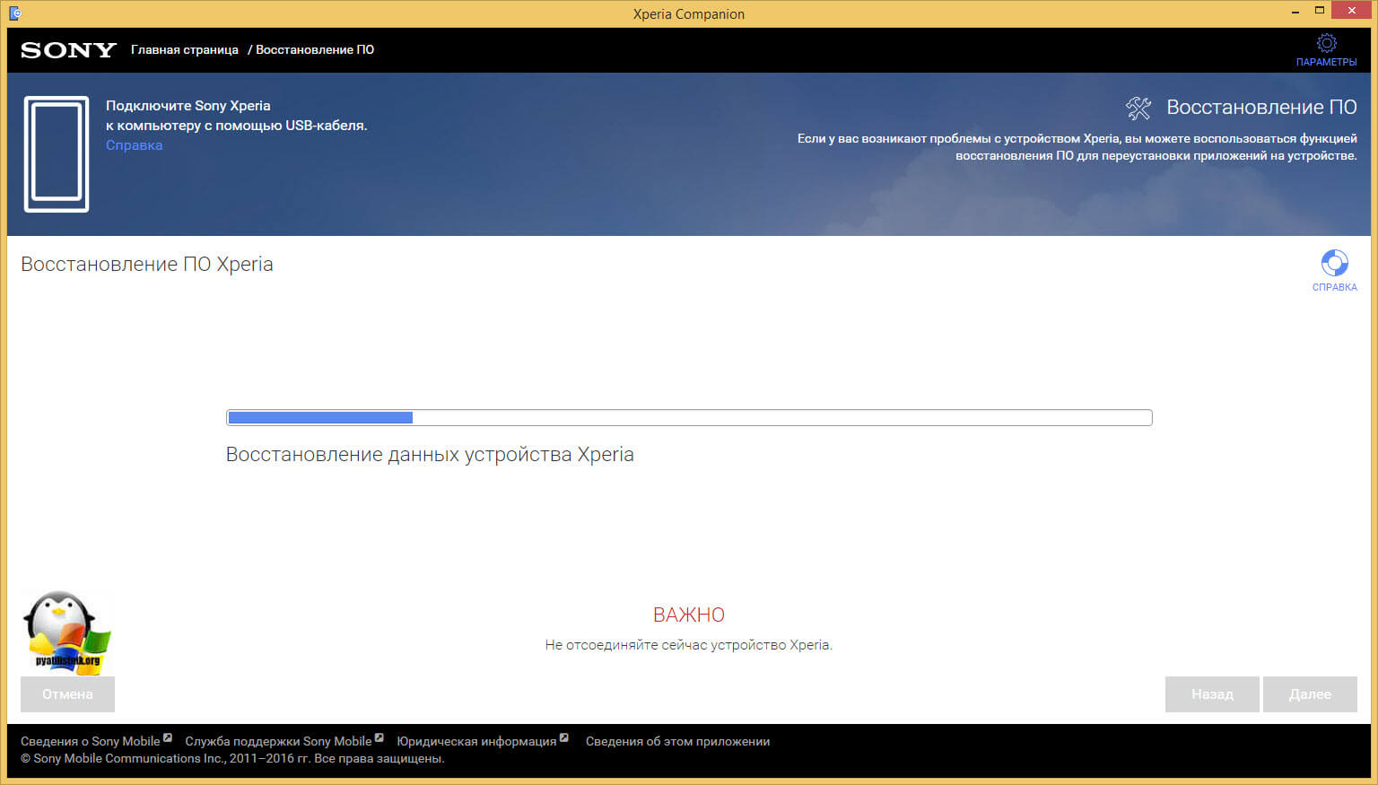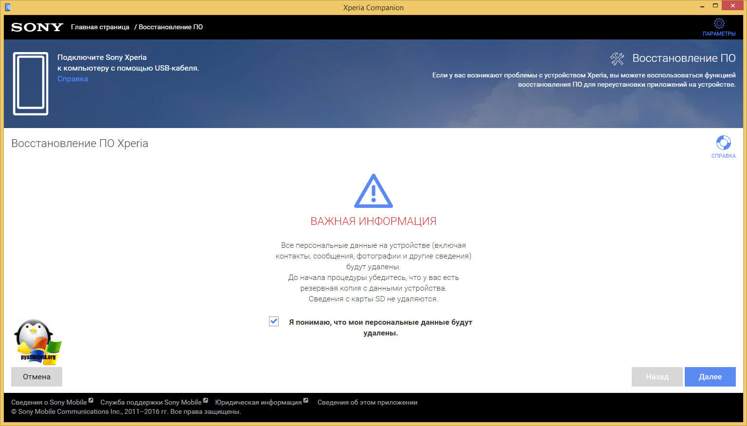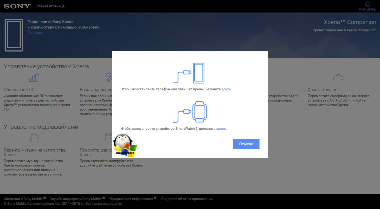 Открываем Xperia Campanion и находим пункт Восстановление ПО он как раз для таких целей и служит.