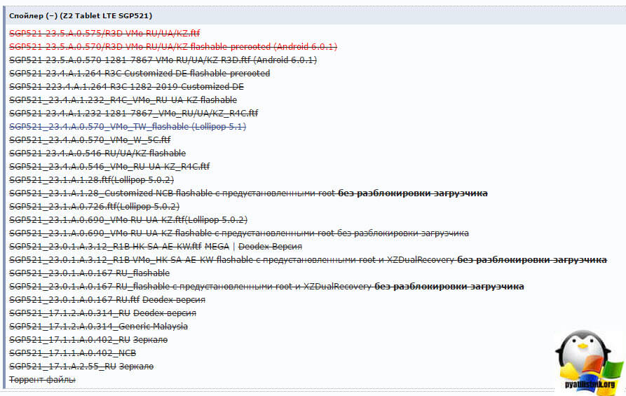 Все эти данные можно подглядеть в названии SGP521_VMo RU-UA-KZ_1281-7867_23.5.A.1.291_R3D, где Branding будет RU-UA-KZ, а Version 281-7867_23.5.A.1.291_R3D