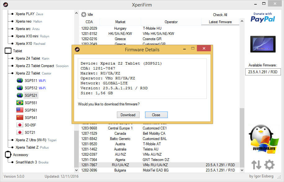 Открываем XperiFirm, находим ваше устройство, выбираем прошивку под свой регион и нажимаем Download.