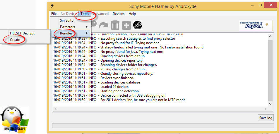 3. Запустить программу FlashTool и в панели выбрать меню Tools
