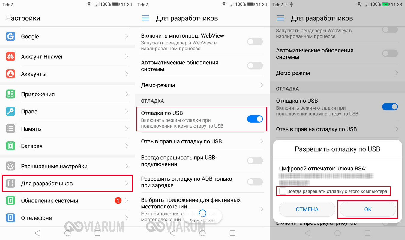 Теперь необходимо подключить телефон к компьютеру с помощью USB-кабеля, а потом перевести его в режим отладки по USB. Для активации данного режима заходим в раздел Настройки – Для разработчиков и включаем соответствующую опцию.