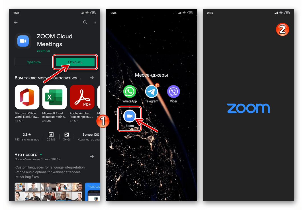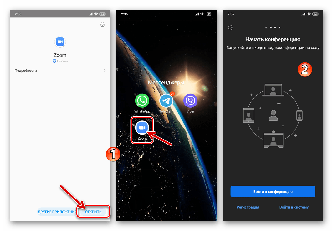 После того, как окно установки APK исчезнет с экрана, установка Zoom для Android завершена. Теперь коснитесь ярлыка на рабочем столе, чтобы запустить инструмент и продолжить регистрацию или авторизацию в системе видеоконференцсвязи.