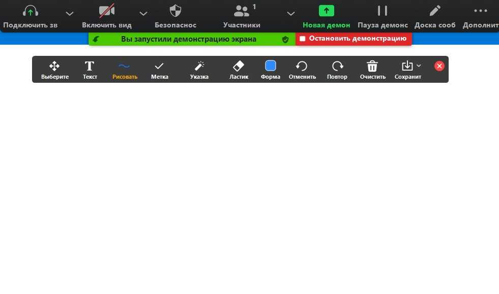Базовые настройки экрана Зум в декстопной версии программы находятся в меню «Демонстрация экрана». Там можно:
