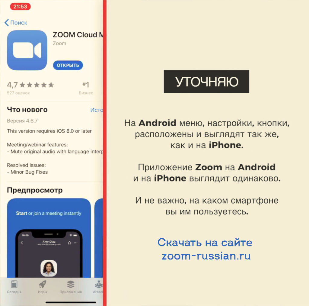 На какой телфеон установить Zoom на русском