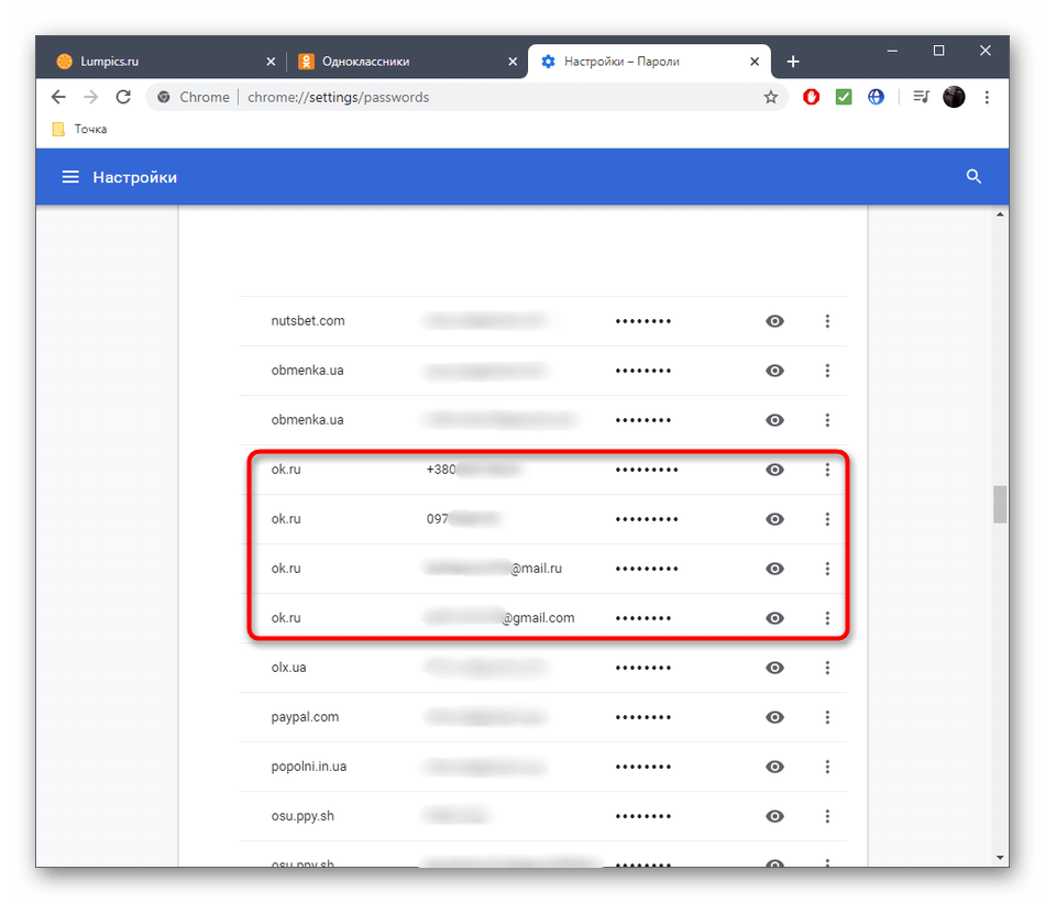 Данный метод подойдет только тем пользователям, у кого номер телефона используется в качестве логина для авторизации в Одноклассниках, а данные для входа сохранены в самом браузере. Тогда определить комбинацию цифр можно через настройки веб-обозревателя. Давайте рассмотрим этот метод на примере популярного Google Chrome.